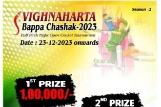 1 लाखांची, विघ्नहर्ता बाप्पा चषक हाफ पिच नाईट खुल्या क्रिकेट स्पर्धा 23…