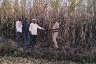 हेस्कॉमच्या तारा मधील विद्युत शॉर्ट सर्किटमुळे, 1 एकर 20 गुंठे ऊस जळून…