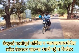 केएलई पदवीपूर्व कॉलेज व न्यायालयासमोरील स्पीड ब्रेकरवर पांढऱ्या रंगाचे पट्टे व रिप्लेटर…
