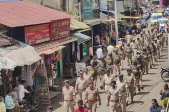 खानापूर शहर, देवलती, व अतीसंवेदनशील भागात पोलिसांचे पथसंचलन-ಖಾನಾಪುರ ನಗರ, ದೇವಲತ್ತಿ, ಹಾಗೂ ಅತಿ ಸೂಕ್ಷ್ಮ ಪ್ರದೇಶಗಳಲ್ಲಿ ಪೊಲೀಸರ ಹದ್ಧೀನ ಕಣ್ಣು. ಭಾರಿ ಗಸ್ತು.