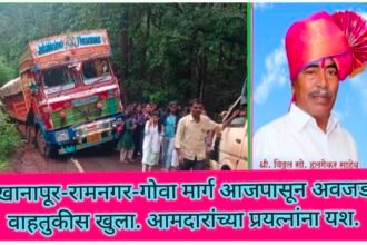 खानापूर-रामनगर-गोवा मार्ग आजपासून अवजड वाहतुकीस खुला. आमदारांच्या प्रयत्नांना यश. खानापूर-रामनगर-गोवा रस्ता, पावसामुळे…
