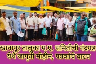 कन्नड सक्तीविरोधी मोर्चात मोठ्या संख्येने सहभागी व्हा ; खानापूर तालुका म.ए. समितीची नंदगड येथे जागृती मोहीम, पत्रकांचे वाटप-ನಂದಗಡ ಯಲ್ಲಿ ಕರ್ನಾಟಕ ಸರ್ಕಾರದ ಕನ್ನಡ ಕಡ್ಡಾಯ ನೀತಿ ವಿರುದ್ಧ ಮೆರವಣಿಗೆ ಮೂಲಕ ಜಾಗೃತಿ; ಮಾರಾಠಿ ಅಭಿಮಾನಿಗಳಲ್ಲಿ ಆಹ್ವಾನ.