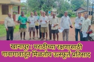 खानापूर : मराठीच्या रक्षणासाठी गावागावातून मिळतोय उत्स्फूर्त प्रतिसाद ಖಾನಾಪುರ: ಮರಾಠಿ ಭಾಷೆಯ ರಕ್ಷಣೆಗೆ ಗ್ರಾಮಗಳಿಂದ ಉತ್ಸಾಹಭರಿತ ಪ್ರತಿಕ್ರಿಯೆ.