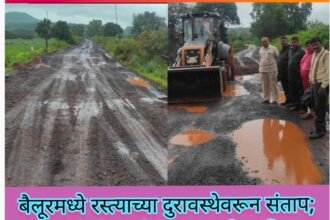 बैलूरमध्ये रस्त्याच्या दुरावस्थेवरून संताप; रास्ता रोको आंदोलन तात्पुरते स्थगित...ठेकेदाराने दिले दुरुस्तीचे आश्वासन;…