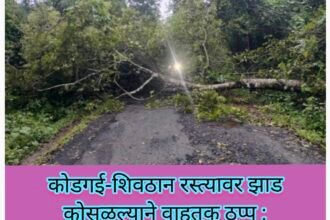 कोडगई-शिवठान रस्त्यावर झाड कोसळल्याने वाहतूक ठप्प ; समाजसेवकांच्या प्रयत्नाने रस्ता मोकळा! खानापूर…