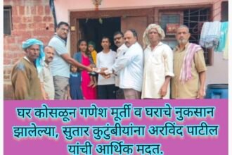 घर कोसळून गणेश मूर्ती व घराचे नुकसान झालेल्या, सुतार कुटुंबीयांना अरविंद पाटील…