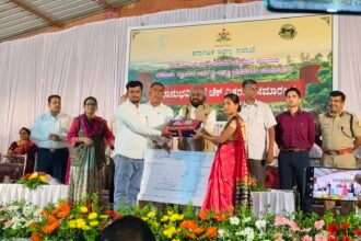 तळेवाडीतील विस्थापितांना वनमंत्र्यांच्या हस्ते धनादेशांचे वितरण. ईतर ग्रामस्थांचा या प्रस्तावाला विरोध-ತಳೇವಾಡಿಯ ತಾ ಖಾನಾಪುರ ನಿರಾಶ್ರಿತರಿಗೆ ಸ್ವಯಂಪ್ರೇರಣೆಯಿಂದ ಸ್ಥಳಾಂತರಗೊಳ್ಳಲು ಇಚ್ಛಿಸಿದ ಕುಟುಂಬದವರಿಗೆ ಅರಣ್ಯ ಸಚಿವರಿಂದ ಚೆಕ್ ವಿತರಣೆ. ಅನೇಕ ಗ್ರಾಮಸ್ಥರು ವಿರೋಧಿಸಿದ ಈ ಪ್ರಸ್ತಾಪ.