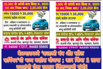 बेळगावमध्ये ‘कलाश्री बंब अँड स्टील फर्निचर’ची भव्य बक्षीस योजना ; कार किंवा 2 लाख रुपयांची रोख रक्कम जिंकण्याची संधी!//ಬೆಳಗಾವಿಯಲ್ಲಿ ‘ಕಲಾಶ್ರೀ ಬಂಬ್ ಅಂಡ್ ಸ್ಟೀಲ್ ಫರ್ನಿಚರ್’ ಇವರ ವತಿಯಿಂದ ಭವ್ಯ ಬಹುಮಾನಗಳ ಯೋಜನೆ — ಕಾರ್ ಅಥವಾ ₹2 ಲಕ್ಷ ನಗದು ಗೆಲ್ಲುವ ಸುವರ್ಣಾವಕಾಶ!