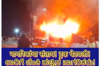 नागरिकांचा संताप! ट्रक पेटवली!-ಲಾರಿಗೆ ಬೆಂಕಿ ಹಚ್ಚಿದ ನಾಗರಿಕರು!