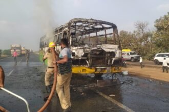 महामार्गावर राज्य परिवहन विभागाच्या बसला आग लागली