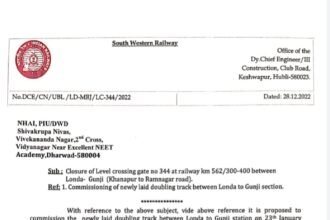 लोंढा ते गुंजी रेल्वे मार्गावर रेल्वेचे द्वीपदरीकरन करण्यात येत असल्याने खानापूर ते…