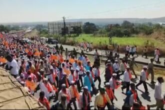 लिंगायत पंचमसाली समाजाच्या मोर्चाला हिरे बागेबाडी येथून प्रारंभ.हजारो लिंगायत पंचमसाली बांधव मोर्चात…