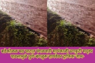 बडेकोळळ मठ घाटात मंगळवारी सायंकाळी ढगफुटी सदृश्य पावसामुळे पुणे-बंगळुरू हायवेवर ट्राफिक जाम…