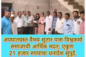 अपघातग्रस्त कुमार वैभव सुतार यास विश्वकर्मा समाजाची आर्थिक मदत; एकूण 21 हजार…
