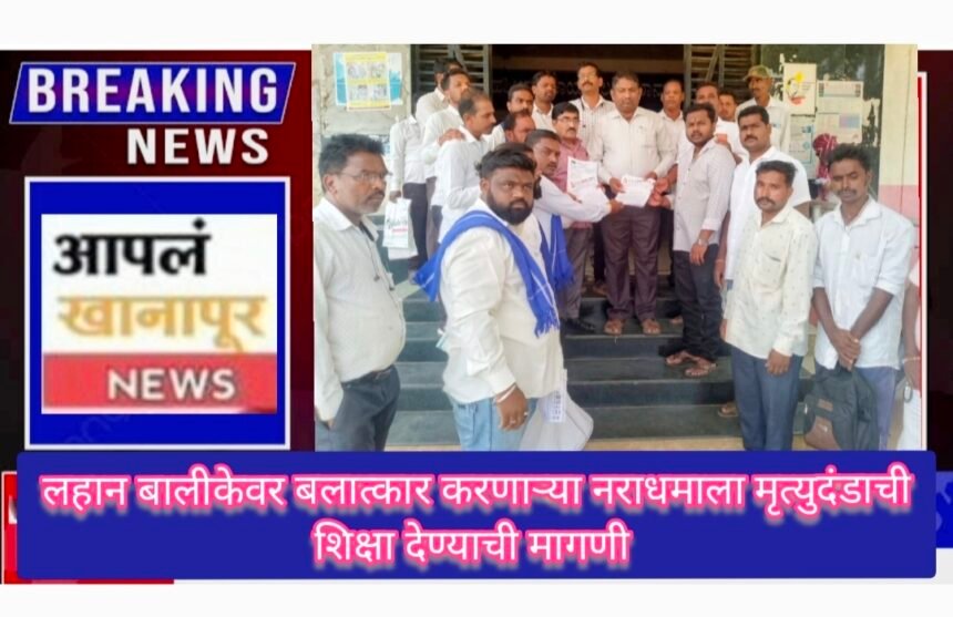 खानापूर ; उत्तर कन्नड जिल्ह्यातील यल्लापूर तालुक्यातील मदनूर गावात अनुसूचित जातीच्या पहिल्या इयत्तेत शिकणाऱ्या विद्यार्थिनीवर बलात्कार करणाऱ्या आरोपींना मृत्युदंडाची शिक्षा देण्याची मागणी करत, विविध संघटनांच्या पदाधिकाऱ्यांनी शनिवारी 5 एप्रिल रोजी, खानापूर शहरातील तहसीलदार कार्यालयासमोर निदर्शने करून माननीय राज्यपालांना तहसीलदारांमार्फत निवेदन देण्यात आले.