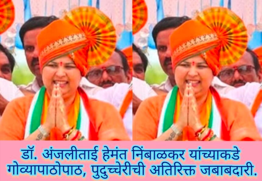 ಖಾನಾಪುರ ತಾಲೂಕಿನ ಮಾಜಿ ಶಾಸಕಿ ಹಾಗೂ ಎಐಸಿಸಿ ಕಾರ್ಯದರ್ಶಿ ಡಾ. ಅಂಜಲಿತಾಯಿ ಹೇಮಂತ ನಿಂಬಾಳ್ಕರ್ ಅವರಿಗೆ ಗೋವಾ ರಾಜ್ಯದ ಬಳಿಕ ಈಗ ಪುದುಚೇರಿ ರಾಜ್ಯದ ಹೆಚ್ಚುವರಿ ಜವಾಬ್ದಾರಿ.