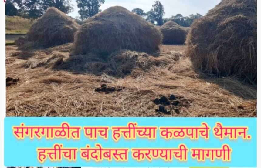 संगरगाळीत पाच हत्तींच्या कळपाचे थैमान; 120 पोती भाताच्या वळ्या विस्कटल्या – शेतकऱ्याचे मोठे आर्थिक नुकसान.