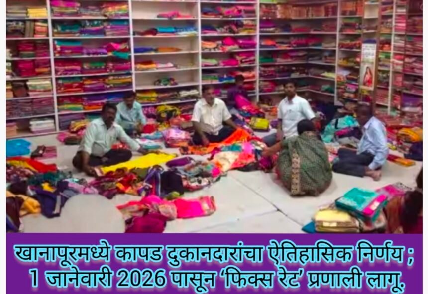 हा निर्णय दि. 1 जानेवारी 2026 पासून प्रत्यक्ष अंमलात आणण्यात येणार असून, त्या तारखेपासून खानापूर शहरातील सर्व कापड दुकानांमध्ये फिक्स रेट पद्धत लागू राहणार आहे.