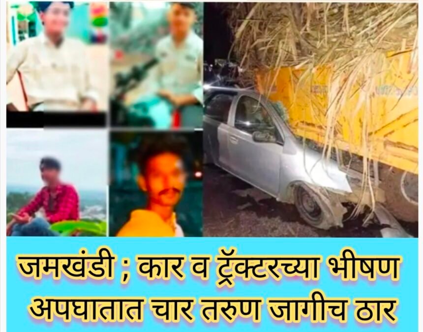 कार व ट्रॅक्टरचा भीषण अपघात ; चार तरुणांचा जागीच मृत्यू.