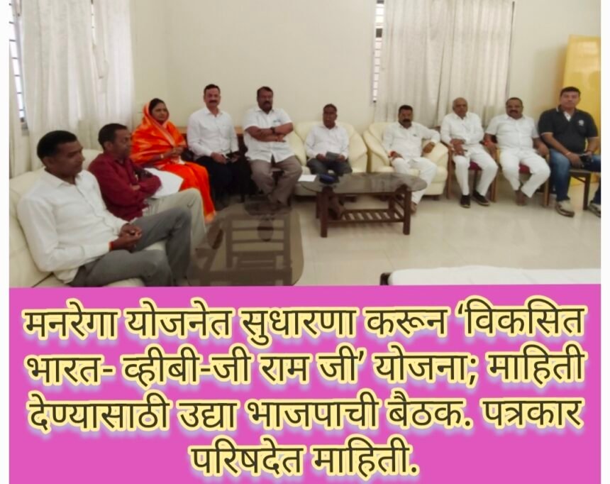 मनरेगा योजनेत सुधारणा करून ‘विकसित भारत – जी राम जी’ योजना; माहिती देण्यासाठी उद्या भाजपाची बैठक. पत्रकार परिषदेत माहिती.