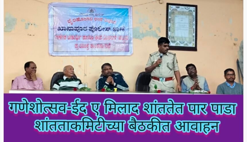 खानापूर : येत्या गणेशोत्सव व ईद ए मिलाद हे दोन्ही सण शांततेत, आनंदात आणि एकोप्याने पार पाडण्यासाठी तहसीलदार कार्यालय व पोलिस खात्याच्या वतीने आवाहन करण्यात आले. पंचायत सभागृहात मंगळवार दिनांक 19 ऑगस्ट रोजी, झालेल्या शांतता समितीच्या बैठकीत प्रशासनाने सर्व गणेश मंडळांना शासनाच्या मार्गदर्शक सूचनांचे पालन करण्याचे निर्देश दिले. बैठकीच्या अध्यक्षस्थानी तहसीलदार दुंडाप्पा कोमार होते.