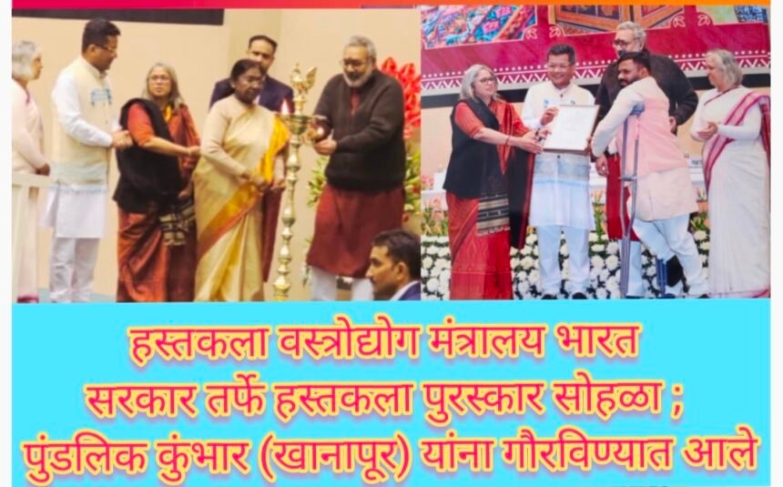 ಭಾರತ ಸರ್ಕಾರದ ಹಸ್ತಶಿಲ್ಪ ಮತ್ತು ವಸ್ತ್ರೋದ್ಯಮ ಸಚಿವಾಲಯದಿಂದ ನವದೆಹಲಿಯಲ್ಲಿ ಹಸ್ತಶಿಲ್ಪ ಪ್ರಶಸ್ತಿ ಸಮಾರಂಭ ; ಖಾನಾಪುರದ ಪುಂಡಲಿಕ್ ಕುಂಭಾರ ಅವರನ್ನು ಗೌರವಿಸಲಾಯಿತು.
