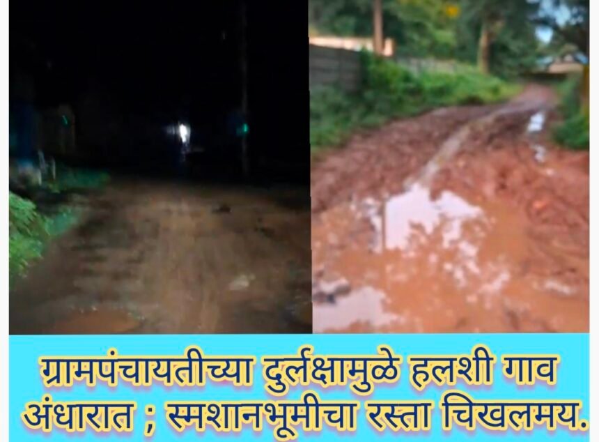 ग्रामपंचायतीच्या दुर्लक्षामुळे हलशी गाव अंधारात ; स्मशानभूमीचा रस्ता चिखलमय.