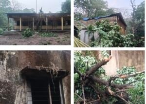 वादळी वाऱ्यामुळे इमारतीच्या स्लॅबवर बसविण्यात आलेले पत्रे उडून गेले किंवा वाकले असून काही ठिकाणी छप्पराचे नुकसान झाले आहे. आधीच स्लॅबला गळती असल्यामुळे पावसाचे पाणी आत झिरपत होते. त्यावर उपाय म्हणून स्लॅबवर पत्रे घालण्यात आले होते; मात्र वादळात त्यांचीही मोडतोड झाल्याने परिस्थिती अधिक गंभीर बनली आहे.