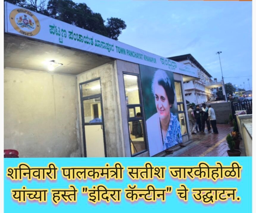 खानापूर मध्ये शनिवारी पालकमंत्री सतीश जारकीहोळी यांच्या हस्ते “इंदिरा कॅन्टीन” चे उद्घाटन.