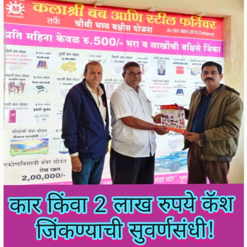 “कलाश्री ग्रुप”तर्फे भव्य बक्षीस योजना ; कार किंवा 2 लाख रुपये कॅश जिंकण्याची सुवर्णसंधी!