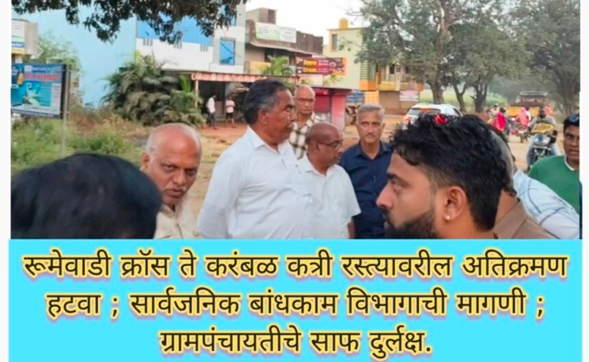 रुमेवाडी क्रॉस ते करंबळ क्रॉस रस्त्यावरील अतिक्रमणे तात्काळ हटवा ; करंबळ ग्रामपंचायतचे दुर्लक्ष.