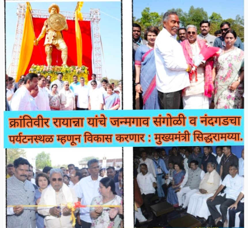 ಕ್ರಾಂತಿವೀರ ಸಂಗೋಳಿ ರಾಯಣ್ಣ ಅವರ ಜನ್ಮಗ್ರಾಮ ಸಂಗೋಳಿ ಮತ್ತು ನಂದಗಡನ್ನು ಪ್ರವಾಸಿ ತಾಣಗಳಾಗಿ ಅಭಿವೃದ್ಧಿಪಡಿಸಲಾಗುವುದು : ಮುಖ್ಯಮಂತ್ರಿ ಸಿದ್ದರಾಮಯ್ಯ ಅವರಿಂದ ಘೋಷಣೆ.