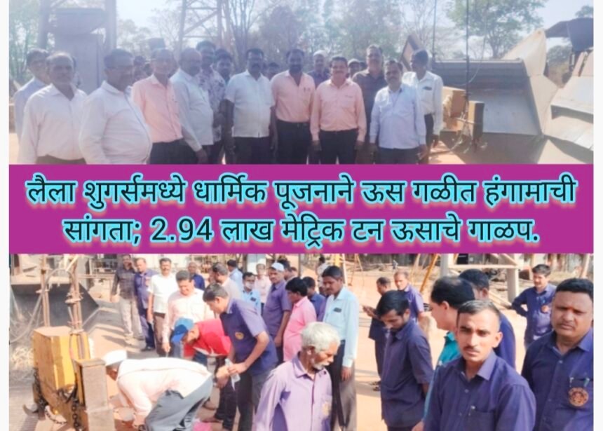 लैला शुगर्समध्ये धार्मिक पूजनाने ऊस गळीत हंगामाची सांगता; 2.94 लाख मेट्रिक टन ऊसाचे गाळप.