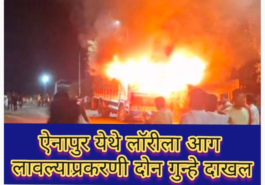 लॉरीला आग लावल्याप्रकरणी, दोन गुन्हे दाखल.