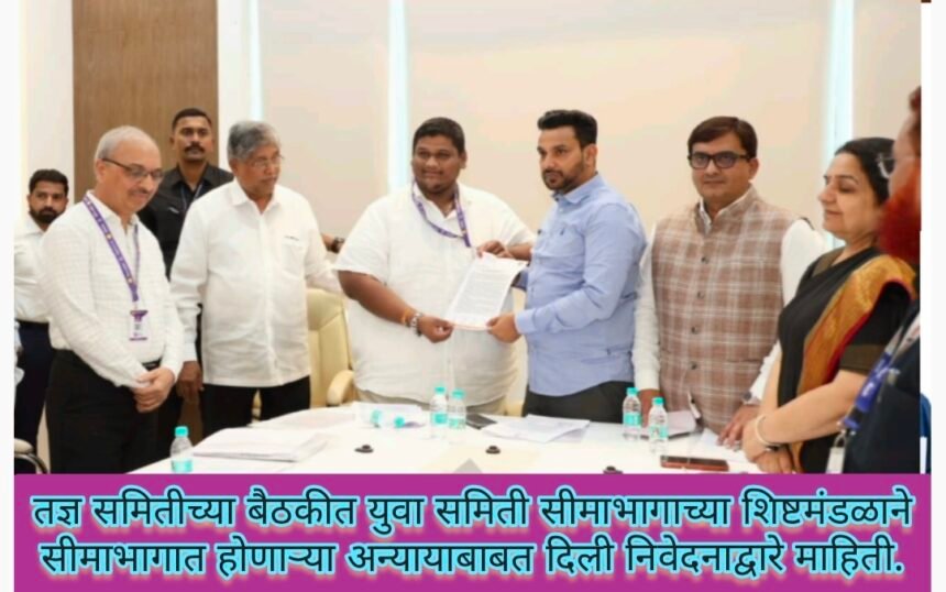 सीमाकक्षात झालेल्या तज्ञ समितीच्या बैठकीत युवा समिती सीमाभागच्याच्या शिष्टमंडळाने सीमाभागात होणाऱ्या अन्यायाबाबत दिली निवेदनाद्वारे माहिती.