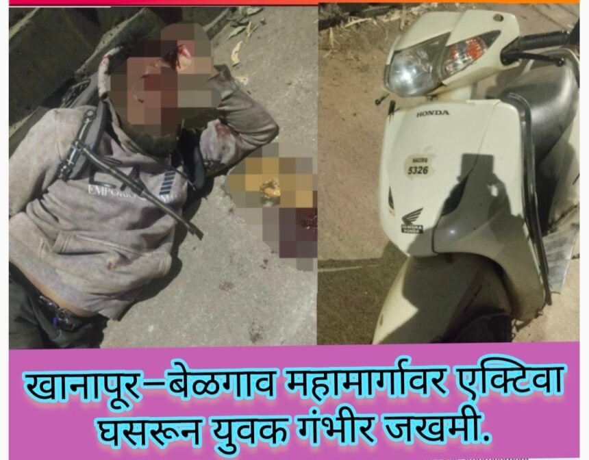 ಖಾನಾಪುರ–ಬೆಳಗಾವಿ ರಾಷ್ಟ್ರೀಯ ಹೆದ್ದಾರಿಯಲ್ಲಿ ಆಕ್ಟಿವಾ ವಾಹನ ಜಾರಿ ಬಿದ್ದು ಯುವಕನಿಗೆ ಗಂಭೀರ ಗಾಯ.