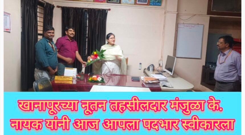 शुक्रवार, दि. 14 नोव्हेंबर रोजी खानापूर तहसीलदार कार्यालयात झालेल्या औपचारिक कार्यक्रमात मंजुळा नायक यांनी तहसीलदार पदाचा कार्यभार स्वीकारला. यावेळी तहसीलदार कार्यालयातील अधिकारी व कर्मचारी मोठ्या संख्येने उपस्थित होते.