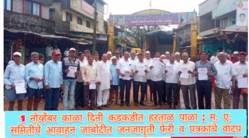 1 नोव्हेंबर काळा दिनी कडकडीत हरताळ पाळा – म. ए. समितीचे आवाहन जांबोटीत जनजागृती फेरी व पत्रकांचे वाटप.