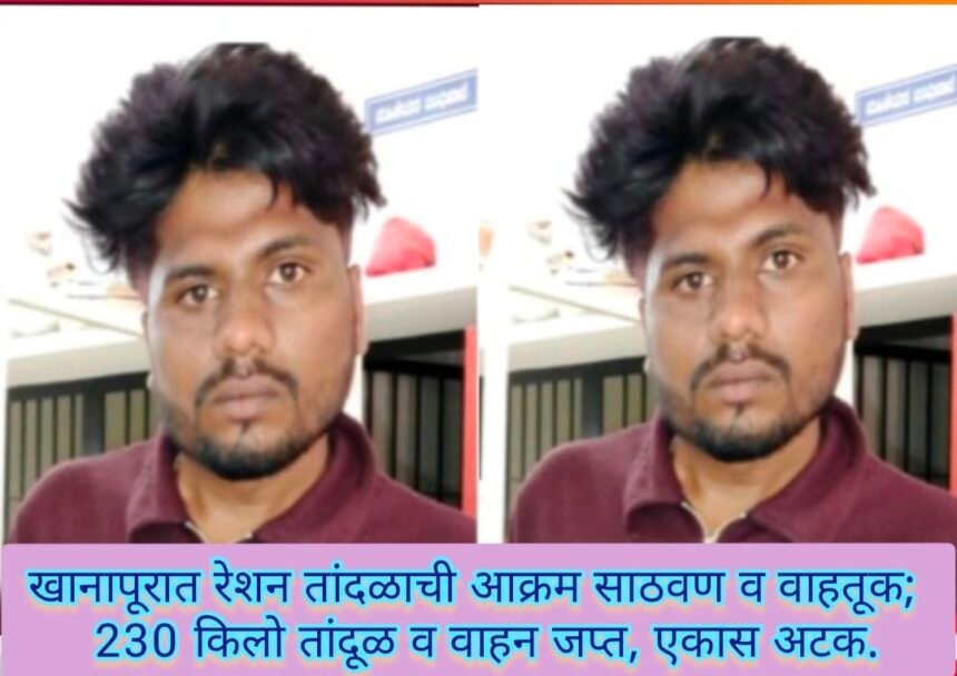 खानापूर पोलिसांना मिळालेल्या खात्रीशीर माहितीनुसार दि. 24 फेब्रुवारी 2026 रोजी सकाळी सुमारे 11.35 वाजता इंदिरानगर क्रॉस, खानापूर येथे वाहनास अडवून आरोपीस तांदळासह ताब्यात घेण्यात आले.