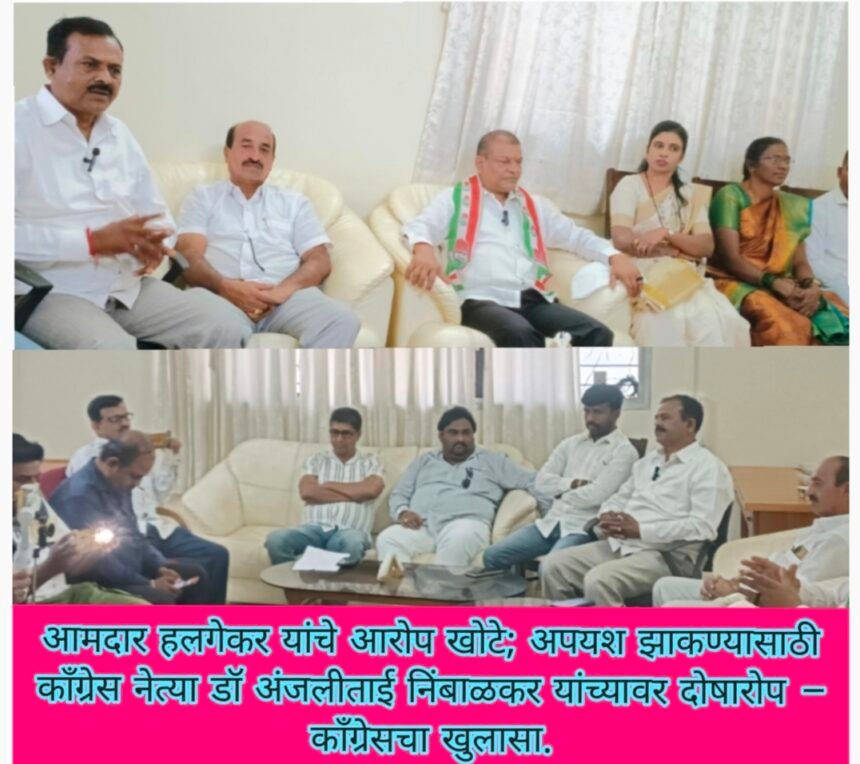 आमदार हलगेकर यांचे आरोप खोटे; अपयश झाकण्यासाठी काँग्रेस नेत्या डॉ अंजलीताई निंबाळकर यांच्यावर दोषारोप – काँग्रेसचा खुलासा-ಖಾನಾಪುರ : ಶಾಸಕ ಹಲಗೇಕರ್ ಅವರ ಆರೋಪಗಳು ಸುಳ್ಳು; ತಮ್ಮ ವೈಫಲ್ಯ ಮುಚ್ಚಿಹಾಕಲು ಕಾಂಗ್ರೆಸ್ ನಾಯಕಿ ಡಾ. ಅಂಜಲಿ ನಿಂಬಾಳ್ಕರ್ ಅವರ ಮೇಲೆ ದೋಷಾರೋಪ – ಕಾಂಗ್ರೆಸ್ ಸ್ಪಷ್ಟನೆ.