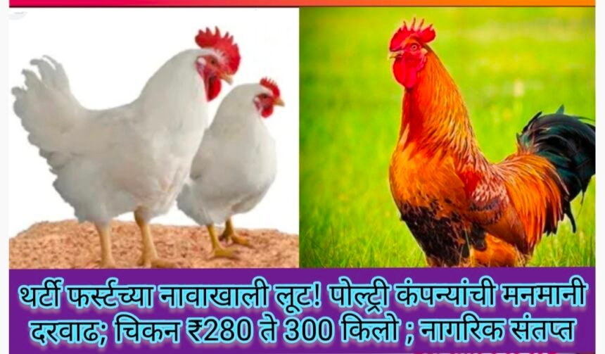 थर्टी फर्स्टच्या नावाखाली लूट! पोल्ट्री कंपन्यांची मनमानी दरवाढ; चिकन ₹280 ते 300 किलो ; नागरिक संतप्त-ಥರ್ಟಿ ಫಸ್ಟ್ ಹೆಸರಿನಲ್ಲಿ ಲೂಟಿ! ಪೊಲ್ಟ್ರಿ ಕಂಪನಿಗಳ ಇಷ್ಟ ಬಂದಂತೆ ದರ ಏರಿಕೆ; ಚಿಕನ್ ಕಿಲೋಗೆ ₹280 ರಿಂದ ₹300 – ನಾಗರಿಕರಲ್ಲಿ ಆಕ್ರೋಶ.
