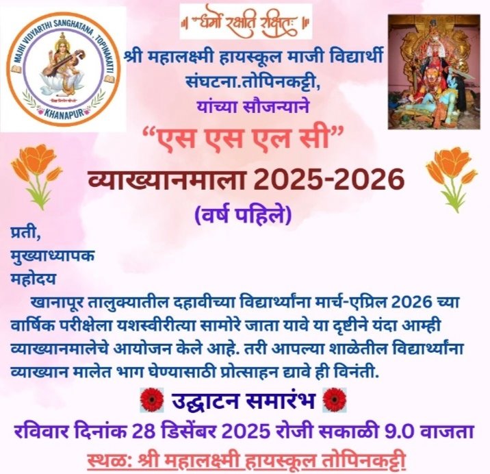 दहावीच्या विद्यार्थ्यांसाठी एस.एस.एल.सी. व्याख्यानमालेचे आयोजन ; श्री महालक्ष्मी हायस्कूल माजी विद्यार्थी संघटनेचा पुढाकार – ಹತ್ತನೇ ತರಗತಿ ವಿದ್ಯಾರ್ಥಿಗಳಿಗಾಗಿ ಎಸ್.ಎಸ್.ಎಲ್.ಸಿ. ಉಪನ್ಯಾಸ ಮಾಲಿಕೆಯ ಆಯೋಜನೆ ; ಶ್ರೀ ಮಹಾಲಕ್ಷ್ಮಿ ಹೈಸ್ಕೂಲ್ ಹಳೆಯ ವಿದ್ಯಾರ್ಥಿ ಸಂಘಟನೆಯ ಮುಂದಾಳತ್ವ