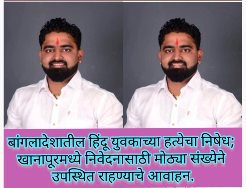 बांगलादेशातील हिंदू युवकाच्या हत्येचा निषेध; खानापूरमध्ये निवेदनासाठी मोठ्या संख्येने उपस्थित राहण्याचे आवाहन- ಬಾಂಗ್ಲಾದೇಶದಲ್ಲಿನ ಹಿಂದೂ ಯುವಕನ ಹತ್ಯೆಯನ್ನು ಖಂಡಿಸಿ; ಖಾನಾಪುರದಲ್ಲಿ ಮನವಿಯನ್ನು ಸಲ್ಲಿಸಲು ಹೆಚ್ಚಿನ ಸಂಖ್ಯೆಯಲ್ಲಿ ಹಾಜರಾಗುವಂತೆ ಕರೆ