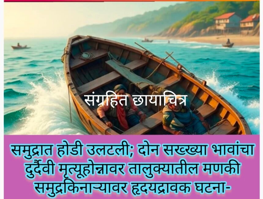 समुद्रात होडी उलटली; दोन सख्ख्या भावांचा दुर्दैवी मृत्यूहोन्नावर तालुक्यातील मणकी समुद्रकिनाऱ्यावर हृदयद्रावक घटना- ಸಮುದ್ರದಲ್ಲಿ ದೋಣಿ ಉರುಳಿ; ಇಬ್ಬರು ಸಹೋದರರ ದುರ್ಘಟನಾತ್ಮಕ ಮರಣ ಹೊಂದಿದ್ದಾರೆ. ಹೊನ್ನಾವರ ತಾಲ್ಲೂಕಿನ ಮಣಕಿ ಸಮುದ್ರತೀರದಲ್ಲಿ ನಡೆದ ಹೃದಯವಿದ್ರಾವಕ ಘಟನೆ.
