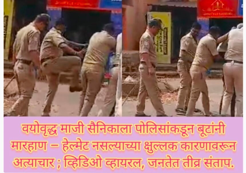 वयोवृद्ध माजी सैनिकाला पोलिसांकडून बूटांनी मारहाण – हेल्मेट नसल्याच्या क्षुल्लक कारणावरून अत्याचार ; व्हिडिओ व्हायरल, जनतेत तीव्र संताप-ವಯೋವೃದ್ಧ ಮಾಜಿ ಯೋಧನಿಗೆ ಬೂಟುಗಾಲಿನಿಂದ ಒದ್ದ ಪೊಲೀಸರು!!!