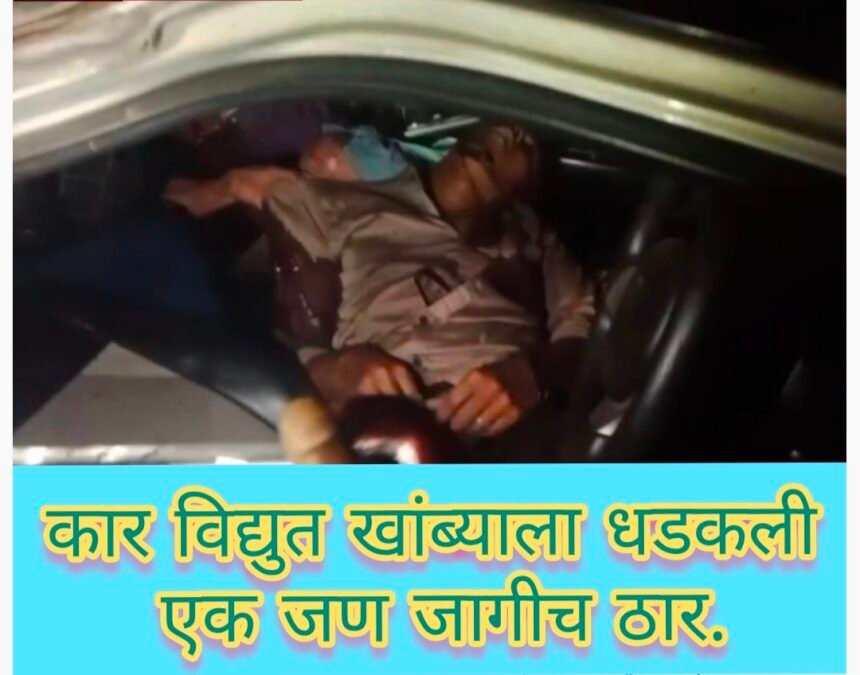 विद्युत खांबाला धडकली कार ; युवकाचा जागीच मृत्यू-ವಿದ್ಯುತ್ ಕಬ್ಬಕ್ಕೆ ಅಪ್ಪಳಿಸಿದ ಕಾರ್: ಸ್ಥಳದಲ್ಲೇ ಯುವಕನ ಸಾವು