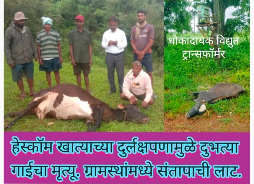 हेस्कॉमच्या निष्काळजीपणामुळे विजेच्या झटक्याने दुभती गायीचा मृत्यू ; शेतकऱ्याचे हजारो रुपयांचे नुकसान-ಹೆಸ್ಕಾಂ ಇಲಾಖೆಯ ನಿರ್ಲಕ್ಷ್ಯ ವಿದ್ಯುತ್ ಶಾಕ್ಗೆ ಹಸು ಬಲಿ; ರೈತನಿಗೆ ಲಕ್ಷಾಂತರ ನಷ್ಟ