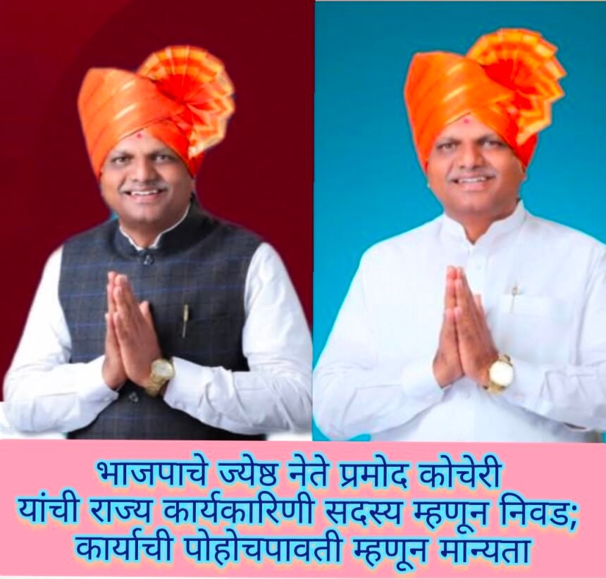 भाजपाचे ज्येष्ठ नेते प्रमोद कोचेरी यांची राज्य कार्यकारिणीवर सदस्य म्हणून निवड; कार्याची पोहोचपावती म्हणून मान्यता.