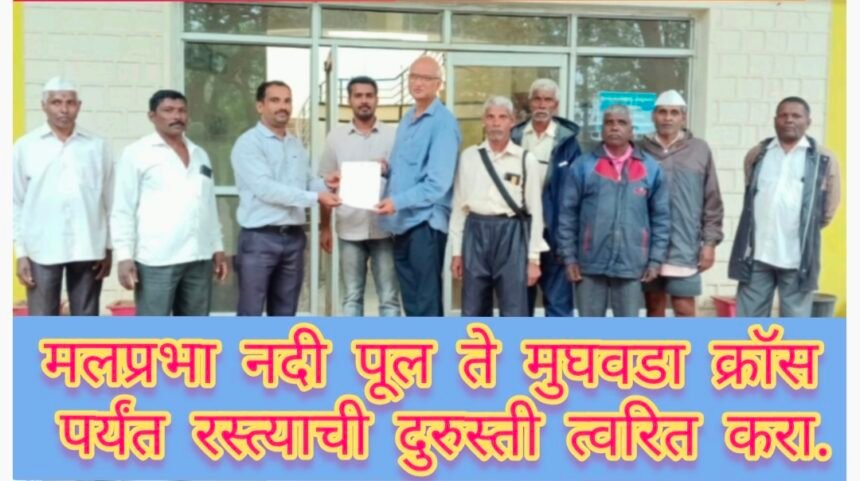मलप्रभा नदी पूल ते मुघवडा क्रॉस पर्यंत च्या रस्त्याची दुरुस्ती त्वरित करा ; पीडब्ल्यूडी अधिकाऱ्यांना नागरिकांचे निवेदन.