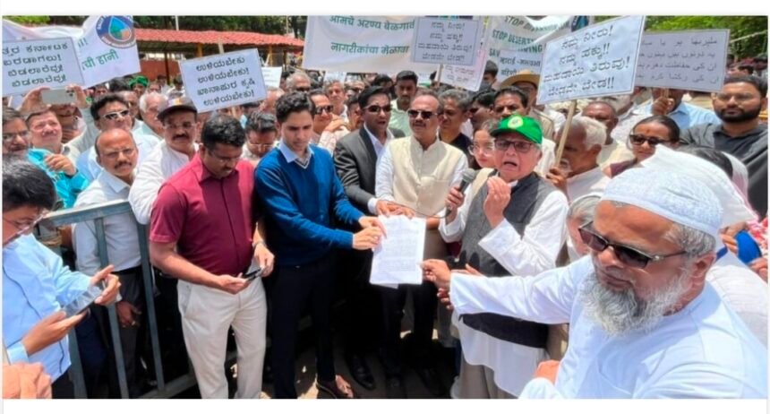 बेळगाव ; म्हादाई आणि कळसा भांडुरा प्रकल्पांमुळे पश्चिम घाटातील जैवविविधता आणि वनसंपदेला धोका निर्माण झाला असून संपूर्ण उत्तर कर्नाटकचे रूपांतर पावसाअभावी वाळवंटात होणार असल्यामुळे या प्रकल्पासह हिडकल जलाशयाचे पाणी हुबळी धारवाडकडे वळवण्याच्या प्रकल्पा विरोधात पर्यावरणप्रेमी संघटना आणि शहरवासीयांनी मंगळवारी सकाळी ‘रैली फॉर बेळगाव’ हे भव्य जनांदोलन छेडून मोर्चाने बेळगाव जिल्हा प्रशासनाला निवेदन सादर केले.